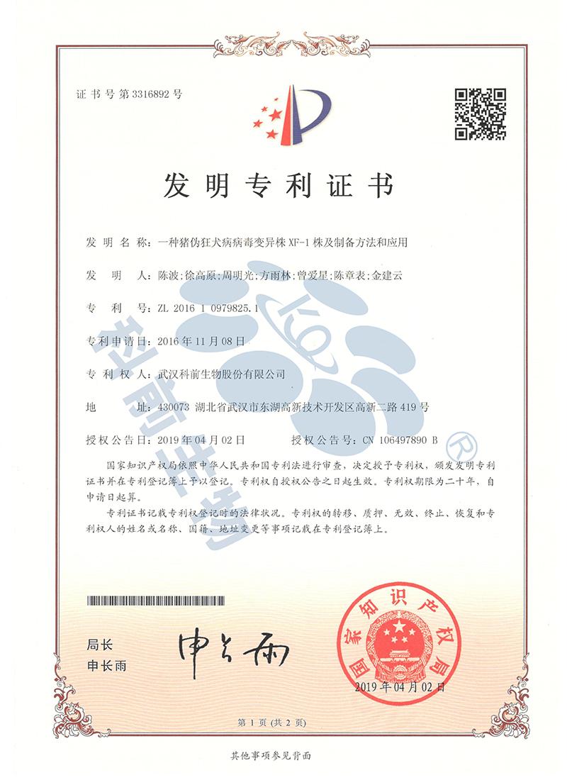 一种猪伪狂犬病病毒变异株XF-1株及制备方法和应用